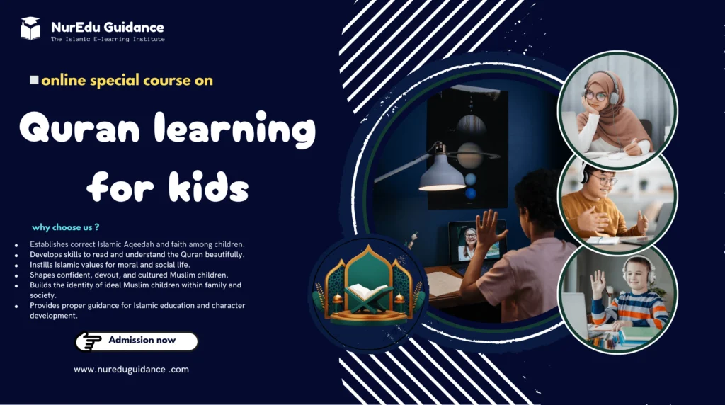 Our special course “Quran Learning for Kids” is an extensive and in-depth Islamic education program designed for children. Through this course, they will build a strong foundation in the Quran, Aqeedah (Islamic creed), and Islamic way of life. Children will be taught the correct recitation and Tajweed of the Quran, along with a clear understanding of Islamic beliefs and Aqeedah, strengthening their hearts and minds.